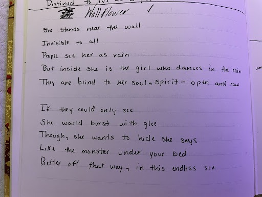 I’ve talked about it before, but I didn’t have the most open dialogue with anyone growing up, because, of course, I was sheltered and I didn’t have access to the resources that would have helped me with my mental health. After testing the waters with a poetry book filled with a story of a haunted music box, a girl running in the woods, and wanting to stop being a wallflower, I was hooked. Here are some excerpts: